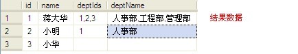 - --此時(shí)已將員工表所存的IDS分別與部門(mén)相關(guān)聯(lián),下面需要將此集合中的deptName聚合成一個(gè)記錄