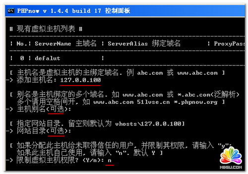 輸入完信息回車后,將自動重啟 Apache 以便生效。