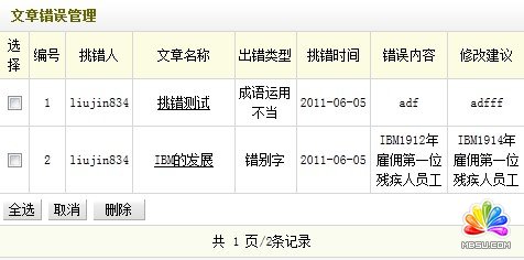 在列表中可以查看被挑錯(cuò)的內(nèi)容。還可以通過“選擇”列的復(fù)選框選取挑錯(cuò)內(nèi)容后進(jìn)行刪除操作。