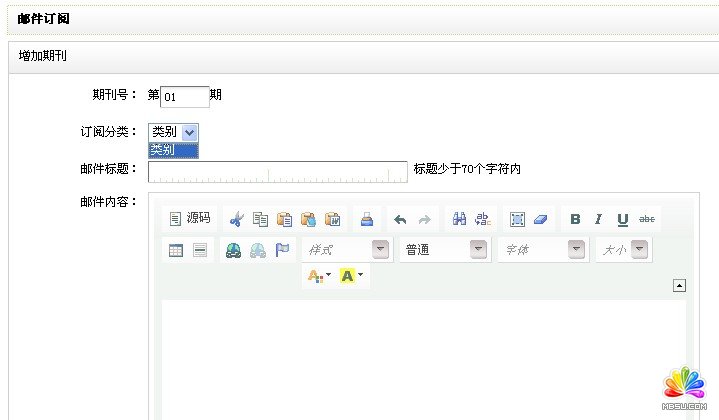 訂閱期刊管理:站長(zhǎng)可以通過(guò)訂閱期刊管理自定義發(fā)送的郵件內(nèi)容。進(jìn)入“模塊/訂閱期刊管理”(如圖18),期刊號(hào)可以自由更改控制,但是無(wú)任何類(lèi)別的期刊不能增加(如圖19)。