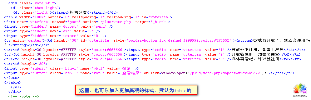 打開主頁模板templets/default/index.htm,在需要調(diào)用投票的地方加入投票代碼,投票調(diào)用有以下3種方式,如下圖: