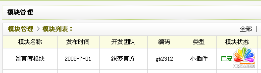 留言薄的卸載,同樣首先我們要進入模塊管理列表,點擊其后的“卸載”: