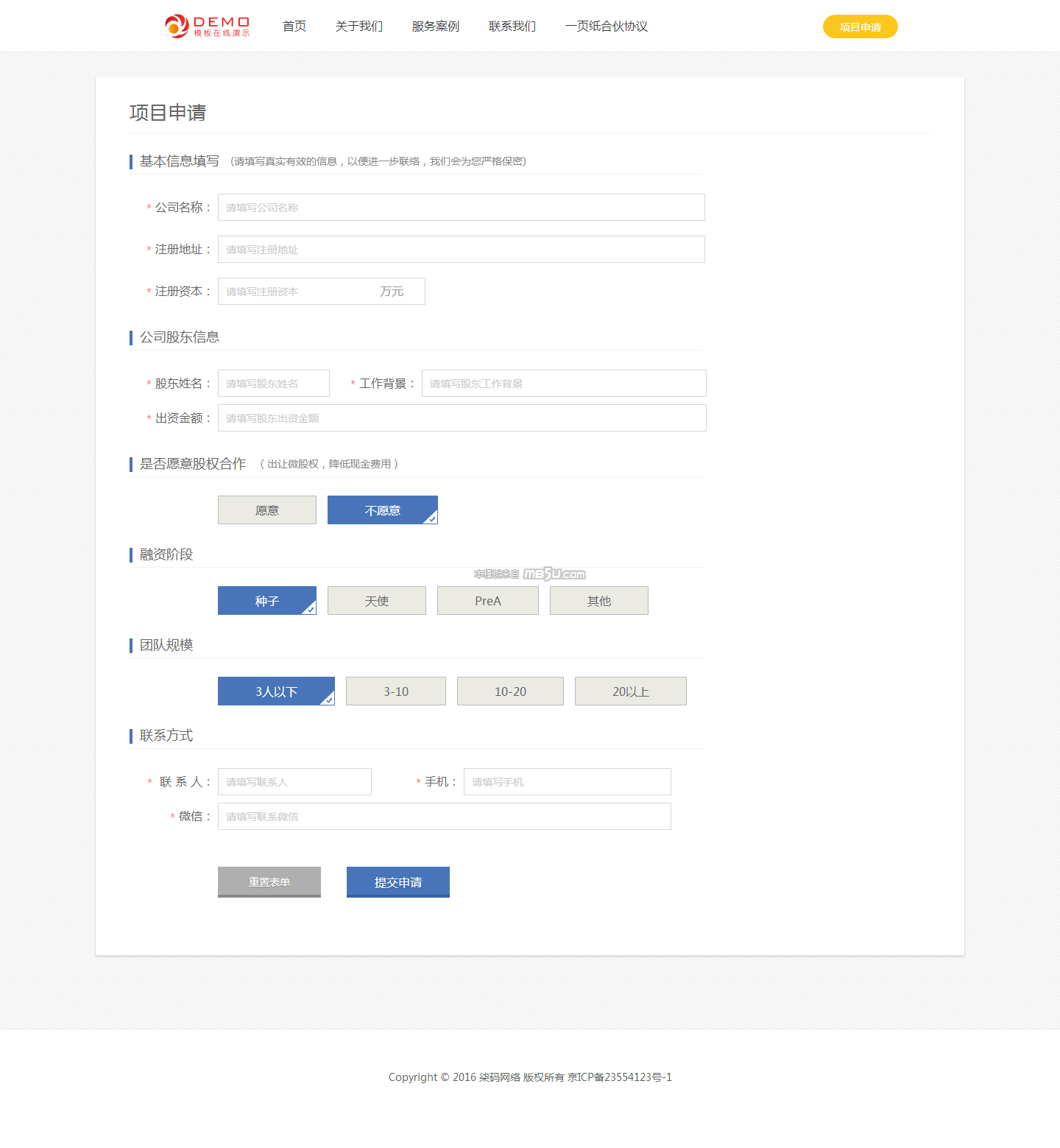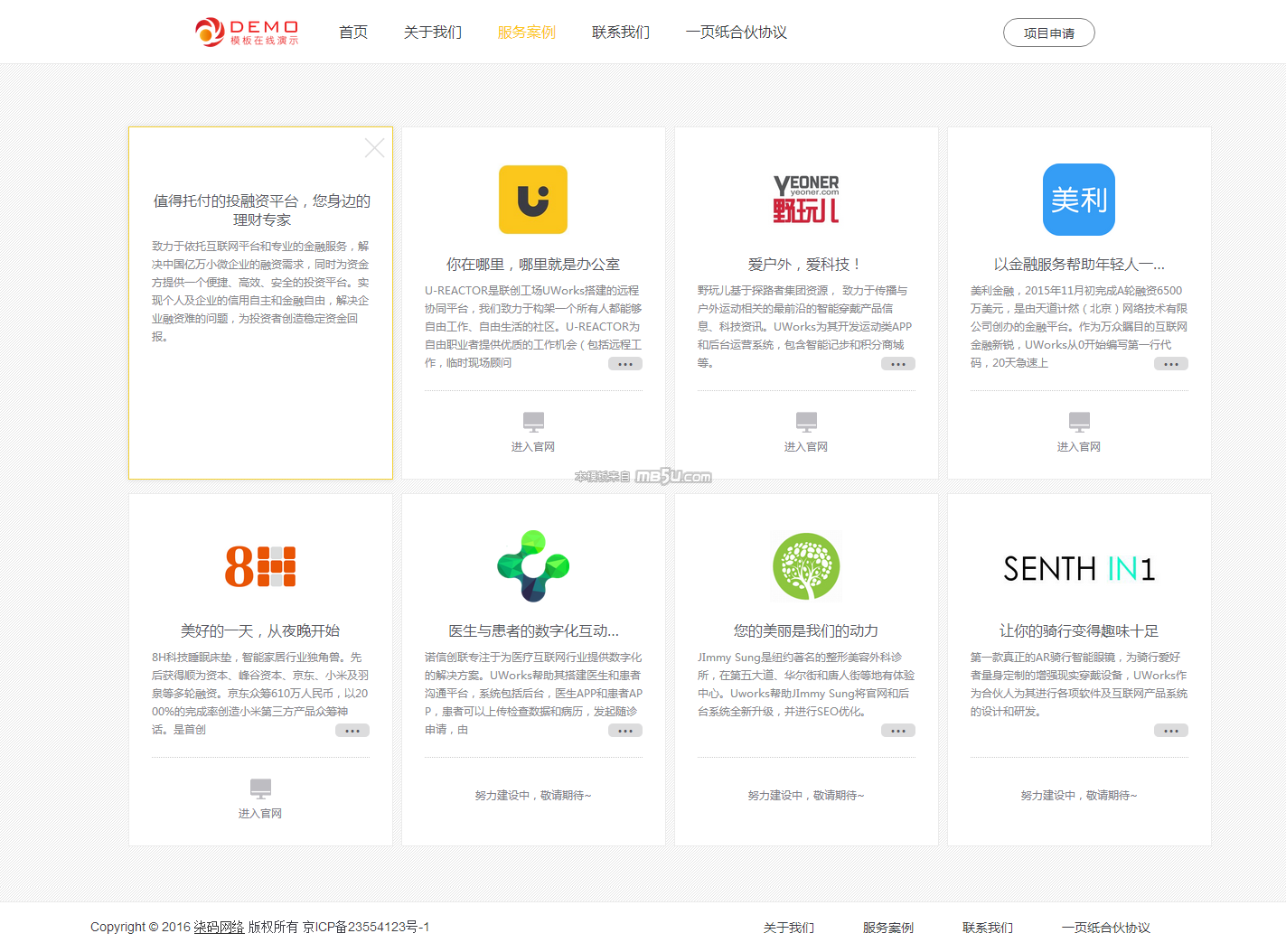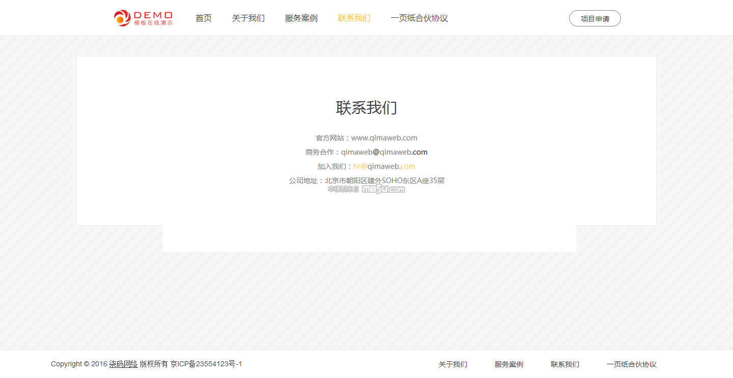 1,模板包括首頁(yè)、案例列表、關(guān)于我們、聯(lián)系我們、服務(wù)介紹、在線簽訂合同、合同管理后臺(tái)等頁(yè)面。
