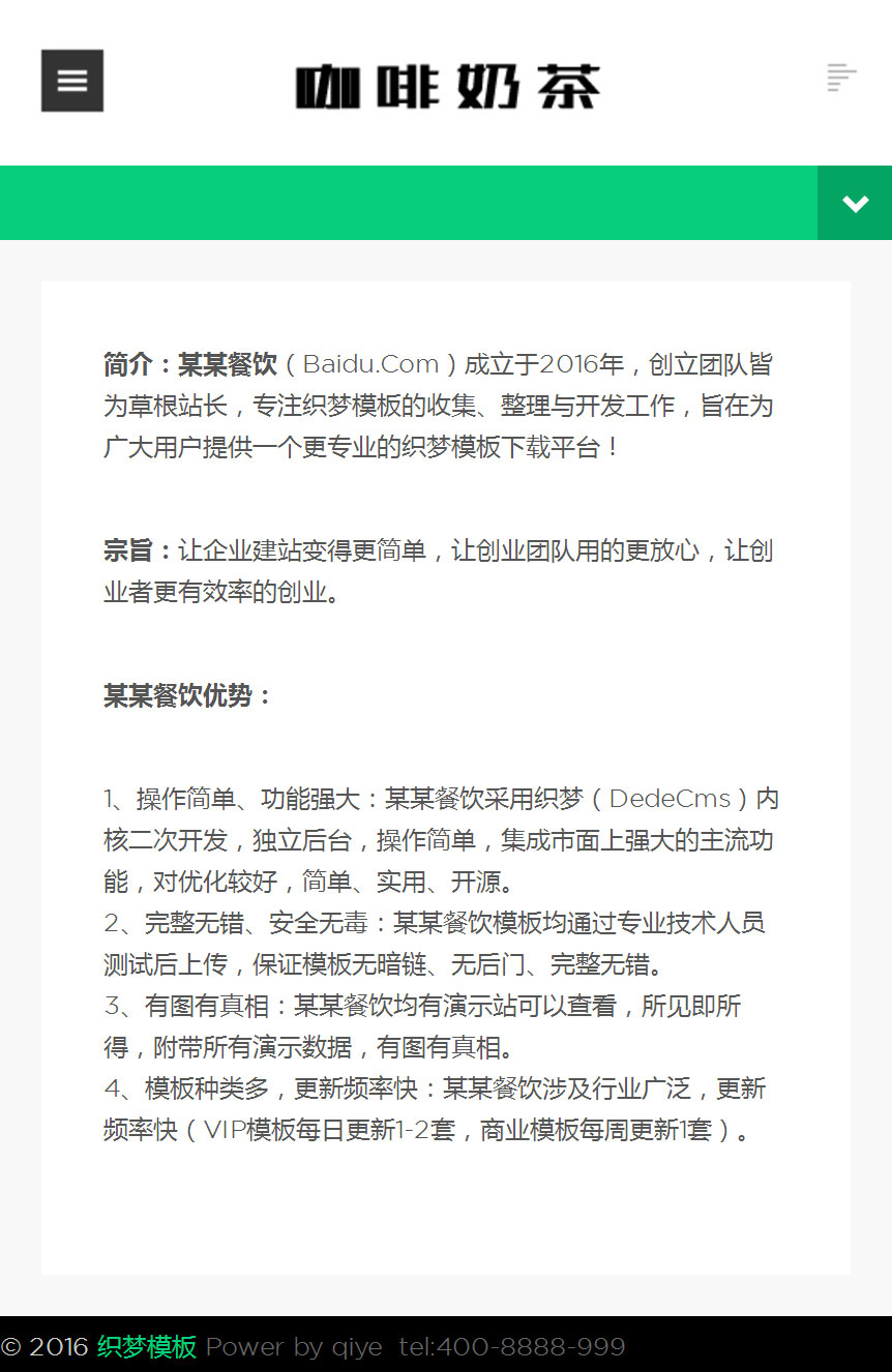 織夢(mèng)模板-咖啡奶茶餐飲類企業(yè)招商加盟網(wǎng)站模板(自適應(yīng)手機(jī)端)