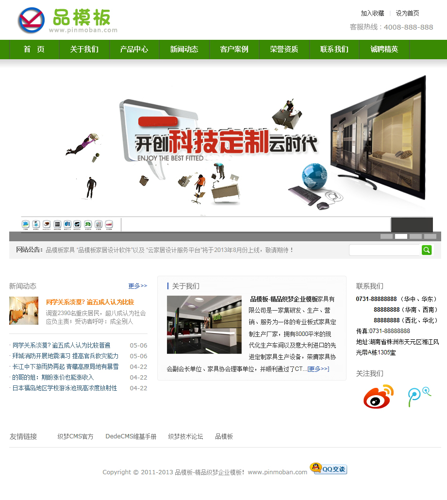 織夢(mèng)模板-dedecms綠色家具模板-布局清晰大方