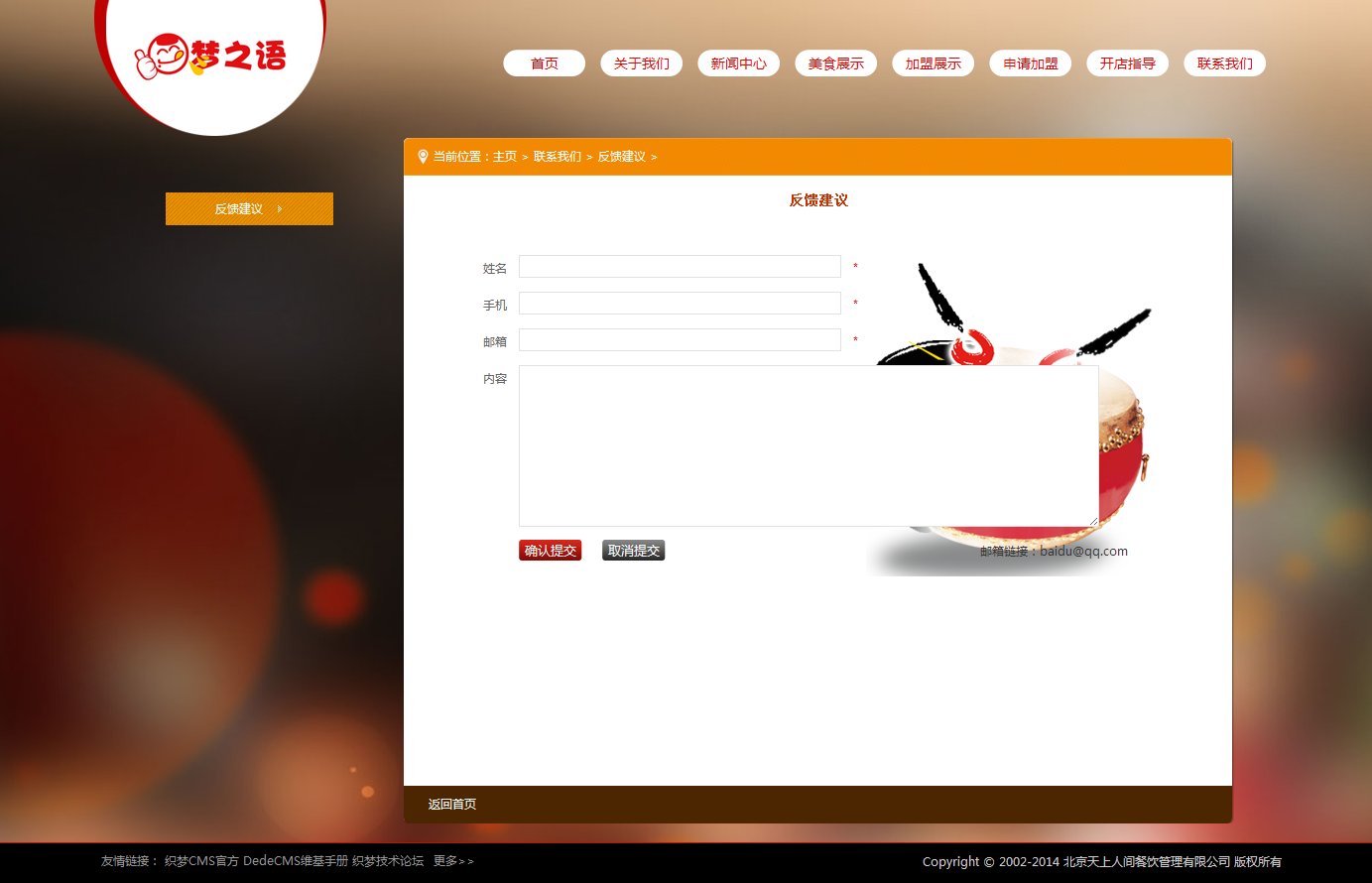 dedecms織夢餐飲美食公司模板(二級菜單)