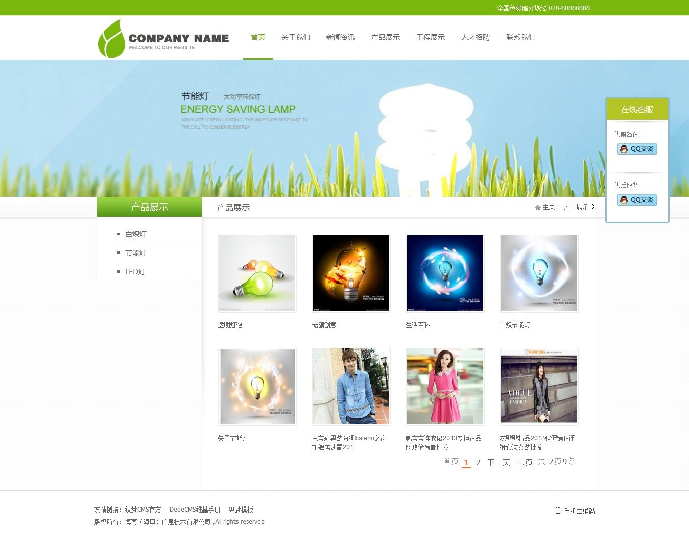 織夢模板-dedecms綠色大氣節(jié)能燈企業(yè)織夢模板
