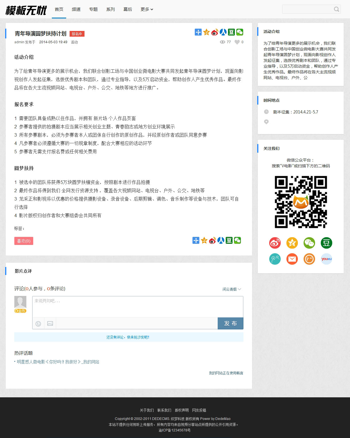 織夢(mèng)模板-織夢(mèng)dedecms大氣微電影網(wǎng)站模板