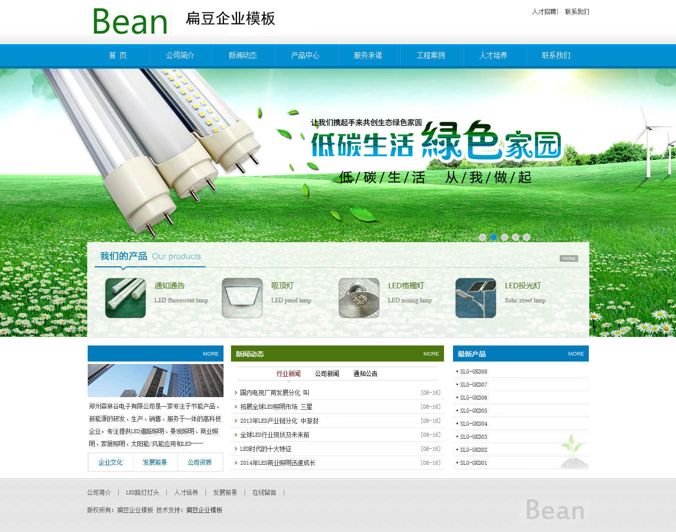 織夢dedecms環(huán)保照明家電公司企業(yè)網站模板(帶測試數據+HTML5)