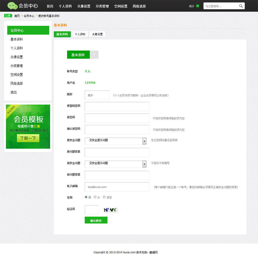酷維網(wǎng)dedecms會(huì)員中心+高仿QQ空間主頁(yè)V2.0