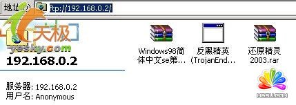 4、客戶端用戶只須輸入你的IP地址就可以用復(fù)制、粘貼進(jìn)行文件下載操作了(圖10)。趕快到網(wǎng)上下一個(gè)試試。