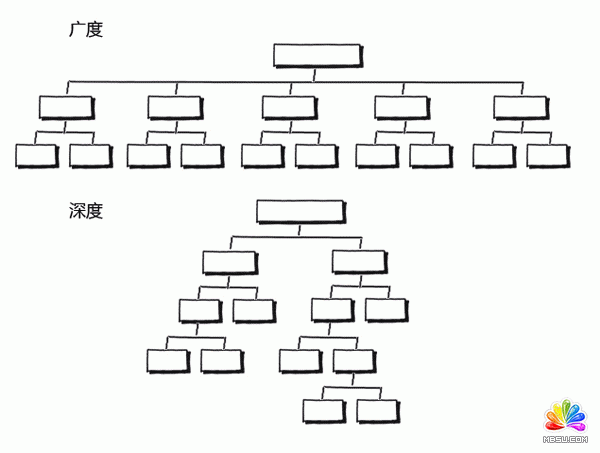 其實(shí)“深廣度”本身并不是一個(gè)單一的概念。在網(wǎng)站的信息架構(gòu)中,有一種組織結(jié)構(gòu)叫做樹形結(jié)構(gòu):網(wǎng)站首頁視為鏈接層級中第一級,與其有從屬關(guān)系的頁面視為鏈接層級中的第二級,一般稱其為二級頁面。通過二級頁面又可以繼續(xù)得到第三級頁面,依此類推可以得到一個(gè)完整的樹形鏈接結(jié)構(gòu)。這樣一個(gè)完整的鏈接結(jié)構(gòu),我們稱它為樹形結(jié)構(gòu)。