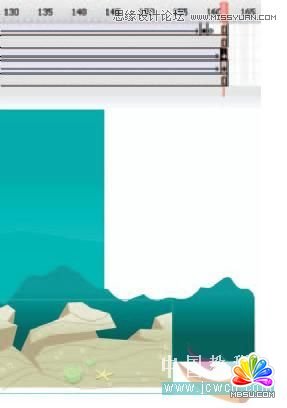3.為每一層添加一個實間動畫,讓每個元件的和一個新的實例在的第1幀與前一個元件的最后一幀在相同的位置上.這樣背景圖片將在水平方向準確連接.