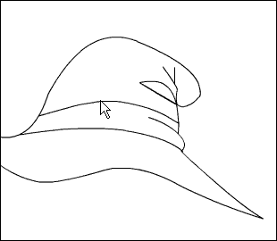 打開Flash,新建一個(gè)空白的Flash文檔。首先來畫帽子~選擇線條工具,先在場景中畫一條橫直線,然后用選擇工具把它變成曲線(這個(gè)變曲線的方法在葉子的繪制里有說了,不明白的就去看下吧~)