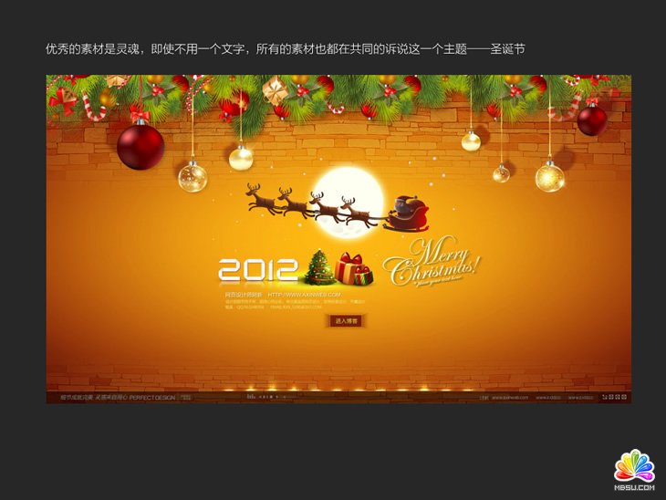設(shè)計(jì)師將眾多素材合適的組合在了一起。即使不用一個(gè)文字,所有的素材也都在共同的訴說(shuō)這一個(gè)主題——圣誕節(jié)