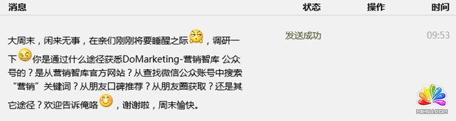 于是筆者有意識的向已經(jīng)訂閱了“DoMarketing-營銷智庫”賬號的受眾推送了如下一條調(diào)研信息: