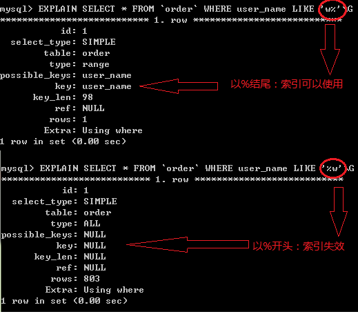 4.如果列類型是字符串,那一定要在條件中將數(shù)據(jù)使用引號(hào)引用起來(lái),否則不使用索引
