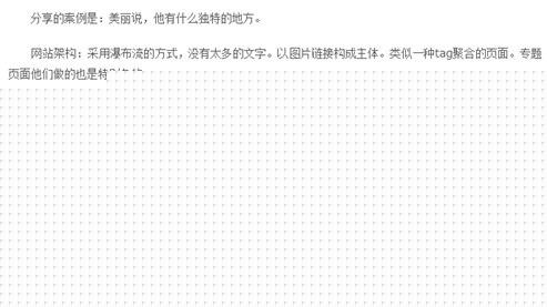 - ZAC關(guān)于美麗說的一個(gè)案例分析,案例里面談到了目前SEO行業(yè)的狀況,也是我非常認(rèn)同的一個(gè)觀點(diǎn),目前的SEO遇到三個(gè)難題:怎么樣進(jìn)行網(wǎng)站架構(gòu),如何建設(shè)獨(dú)特的網(wǎng)站內(nèi)容,網(wǎng)站