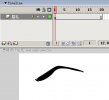 - 打開Flash,新建一個空白的Flash文檔。首先來畫帽子~選擇線條工具,先在場景中畫一條橫直線,然后用選擇工具把它變成曲線(這個變曲線的方法在葉子的繪制里有說了,不明白的就去看下吧~) 截個小動畫幫助大家理解曲線的制作~ 再次選擇線條工具,加多一條直線,且選擇工具