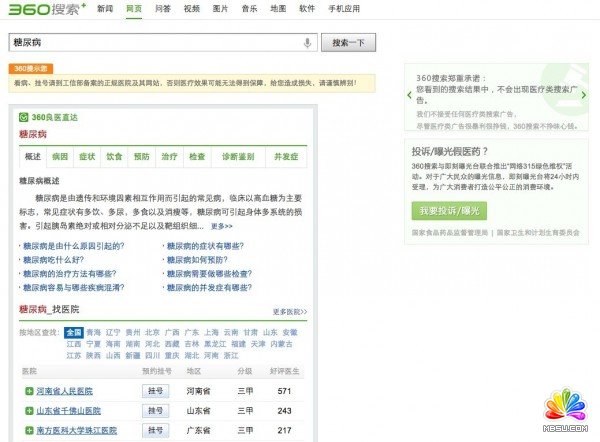 “良醫(yī)搜索”屬于360搜索推出的醫(yī)療、醫(yī)藥、健康信息垂直搜索引擎,并將成為360搜索的一個(gè)長期子頻道。當(dāng)用戶在360搜索中鍵入疾病或醫(yī)院名稱時(shí),搜索結(jié)果頁面會(huì)出現(xiàn)“360良醫(yī)直達(dá)”板塊,按照醫(yī)院及醫(yī)師的口碑進(jìn)行有效推薦排序。