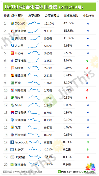 JiaThis發(fā)布2012年4月社會(huì)化分享排行榜_站長新聞