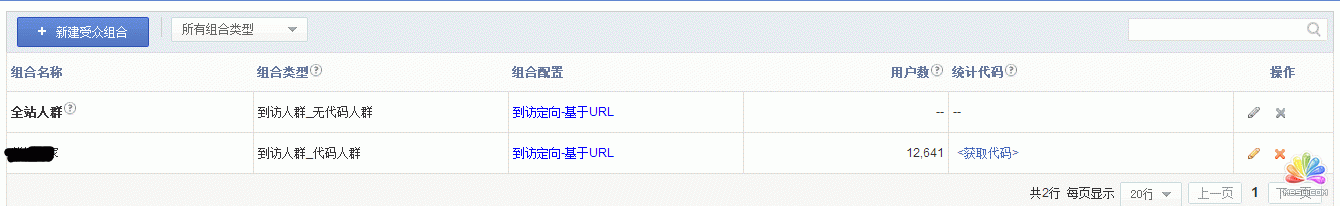 建立受眾人群:點(diǎn)擊受眾組合,建立代碼人人群