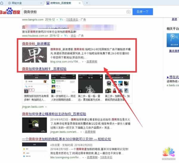 就比如:你現(xiàn)在打開百度搜索“微商快粉”然后看到新浪博客就是我的!這樣的效果就可以了,當(dāng)然了點(diǎn)擊之后就會(huì)看到更多!