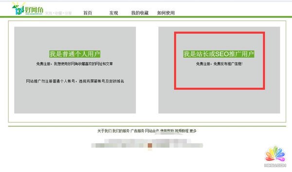對(duì)了!說到收錄!請(qǐng)?jiān)徫以俅螄N瑟一番了呀!像這種博客收錄或者別個(gè)的收錄呢,建議是更新一個(gè)內(nèi)容之后,然后直接把鏈接去提交到好網(wǎng)角,目前來說這個(gè)好網(wǎng)角收錄的速度很快,不管是通過他的提交或者是通過他的收藏!收錄效果都不錯(cuò)呢。特別要再次在這里狠狠的說一句,注冊(cè)的時(shí)候一定要千萬記住選擇站長(zhǎng)推廣的那一欄,不然提交的就會(huì)很容易被和諧了!