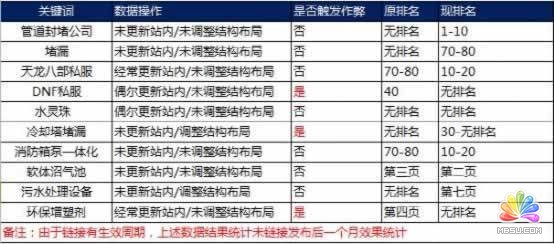 根據(jù)上圖所示(避免廣告出現(xiàn),所以不發(fā)布相關站點),可以看到一組明顯的數(shù)據(jù)為,域名時間、收錄量、鏈接增長速度、鏈接生效周期、站點基礎鏈接數(shù)據(jù)等維度決定了鏈接是否觸發(fā)作弊。同樣的錨文本鏈接位置,不同的10個隨機站點,結(jié)果大不相同,而是否觸發(fā)鏈接作弊根據(jù)上面的綜合數(shù)據(jù)評分可以得出: