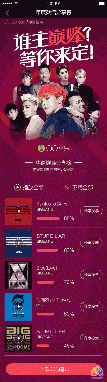 增強(qiáng)偶像的號(hào)召力,每首歌的配圖,換成歌手頭像,偶像盯著你哦還不快投票/分享。