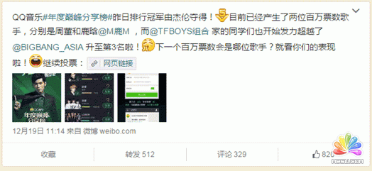 (3)陸續(xù)發(fā)布有關(guān)他們愛(ài)豆的文章。初期的對(duì)策是發(fā)布有關(guān)幾大明星的文章,TFboys、鹿晗、bigbang等,這種類型的文章都得到了很高的閱讀和轉(zhuǎn)發(fā)量,輕松破十萬(wàn)。