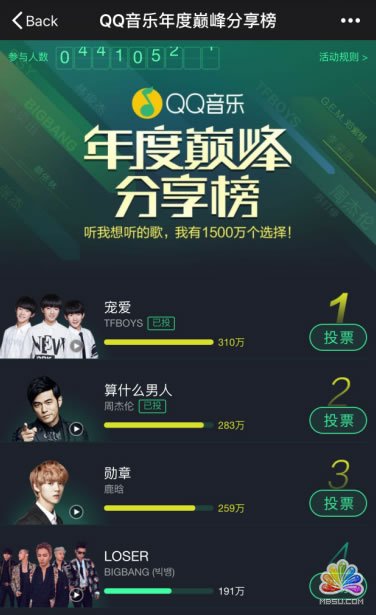 這是一個(gè)功能清晰的頁(yè)面,粉絲知道:這是QQ音樂(lè)推出的一個(gè)年度排行榜,我需要做的是讓幫我家藝人上榜;