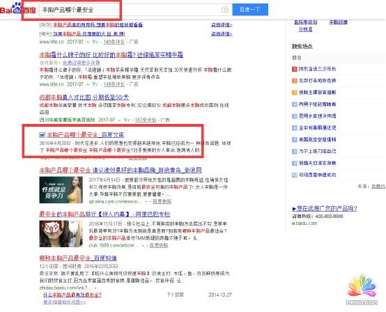 那我現(xiàn)在以“豐胸產品哪個最安全”這個長尾關鍵詞,在百度上搜索,給你們演示。
